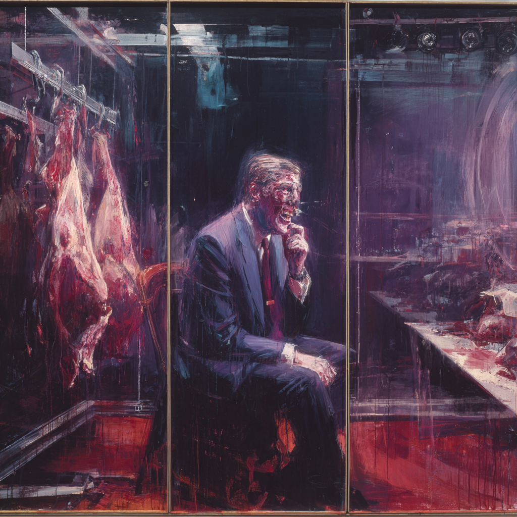 The words come out. Capability. Intent. Deterrence. Escalation ladder. The words were written in rooms he has never entered by men who have never held a weapon. He is a sock puppet with a body count. He is a postcard from the war. And postcards do not understand the places they depict. Postcards are flat. Postcards are dumb. Postcards show you the beach and not the sewage, the monument and not the graves, the flag and not the man in his bed with his hands open and his eyes opening and then nothing, nothing, nothing forever.